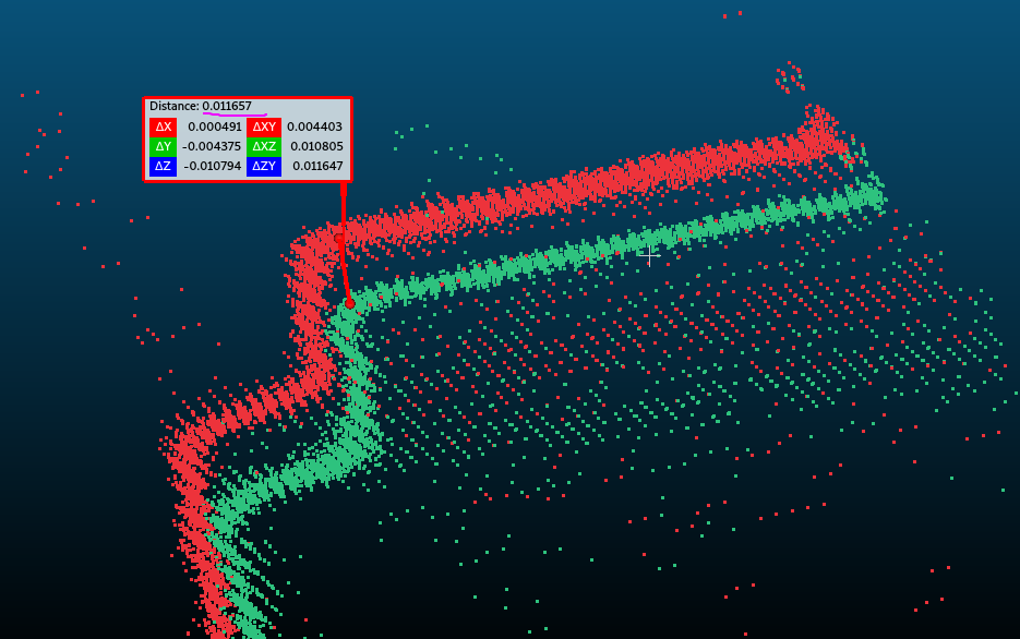 But when I compared the current pointcloud with the one from 6 month ago, I can see the 10 mm offset at 2.3m away from the camera.