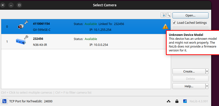 I am using a GV-5990SE-C camera, and when viewed through NxLib there is a warning that NxLib doesn’t provide a firmware version for this camera. I tried downloading & manually updating the firmware to the version found here but the error persists. I was able to calibrate the cameras still although the relative positions of the two cameras (this + the N36) presented in NxView don’t quite align with reality. If I can safely ignore the warning that’s ok, but I want to make sure I’m not missing something critical. Thanks in advance.